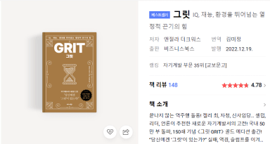 [독서후기_꿈이사] 그릿 (IQ, 재능, 환경을 뛰어넘는 열정적 끈기의 힘)
