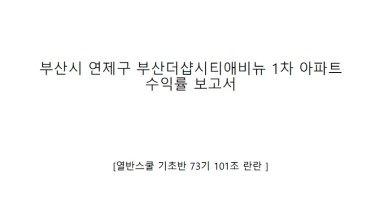 연제구 연산동 더샵시티애비뉴1차아파트 수익률보고서 [열반스쿨 기초반 73기 101조 란란]