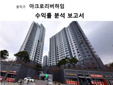 동작구 흑석동 아크로리버하임 수익률 분석 보고서 [열반스쿨 기초반 73기 60조 티몬]