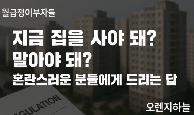 안녕하세요. 여러분의 미래를 따뜻한 노을빛으로 물들이고 싶은 오렌지하늘입니다. 요즘 수도권 집값이 여기저기 오르면서 혼란스러워 하시는 분들의 모습을 보게 됩니다. 뉴스나 유튜브에서 여러 사람들이 집을 사야된다고 하니까 마음이 조급하기도 하고, 막상 사려고 아파트 시세를 찾아보면 이미 오른 가격에 "이게 맞나?" 싶기도 하실겁니다. 게다가 규제가 나올거라니…