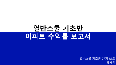 대전광역시 유성구 어은동 한빛 아파트 수익률 분석 보고서 [열반스쿨 기초반 73기 84조 감자곰]