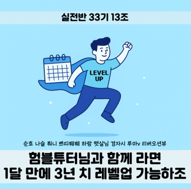 [실전 33기 험블튜터님과 함께라면 1달만에 3년치 레벨업 가능하조 하람] 실전 1강 수강후기