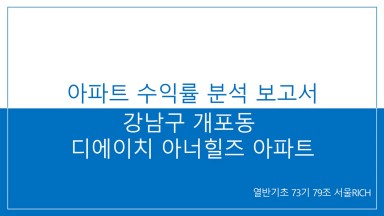 강남구 개포동 디에이치 아너힐즈 아파트 수익률 분석 보고서 [열반스쿨 기초반 73기 79조 서울RICH]