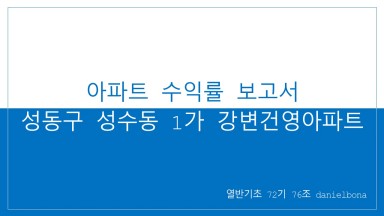 성동구 성수동 1가 강변건영아파트 수익률 분석 보고서 [열반스쿨 기초반 72기 76조 danielbona]