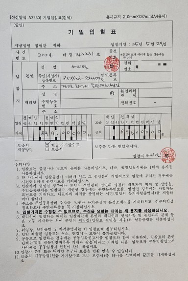 [경매올인원] 써니별의 기일입찰표 작성 인증