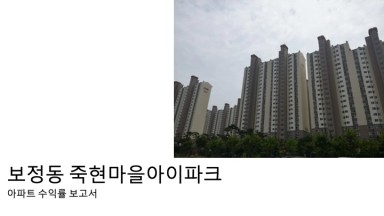 용인시 기흥구 보정동 죽현마을아이파크 수익률 분석 보고서 [열반스쿨 기초반 74기 54조 황조롱이]