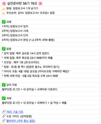 [실준 56기] 조장님들 위한 ✨조 운영 관리 구글시트 양식✨ 공유