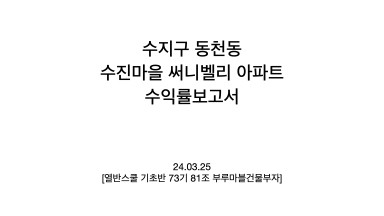 수지구 동천동 써니밸리아파트 수익률 분석 보고서 [열반스쿨 기초반 73기 81조 부루마블건물부자]