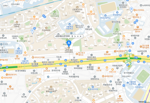 ✅아파트명 e편한세상신촌아파트 ✅위치(지도) ✅입지평가 1. 직장 서대문구 종사자수 118,256명 (B등급) 2. 교통 강남 54분 / 여의도 23분 / 시청 18분 (A등급) 3.학군 중앙여중 81.2% / 한성중 74.1% / 아현중 75% (C등급) 4. 환경 현대백화점 신촌점(1.4km), 이마트 신촌점(1.4km), 세브란스병원(1.06km) (
