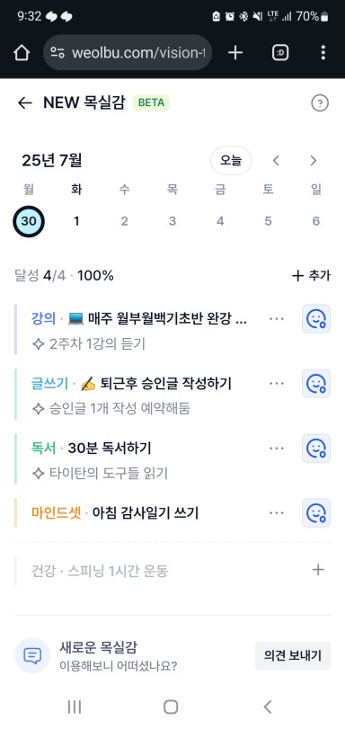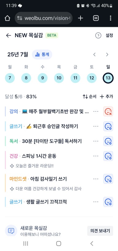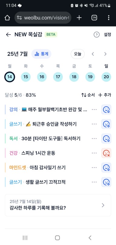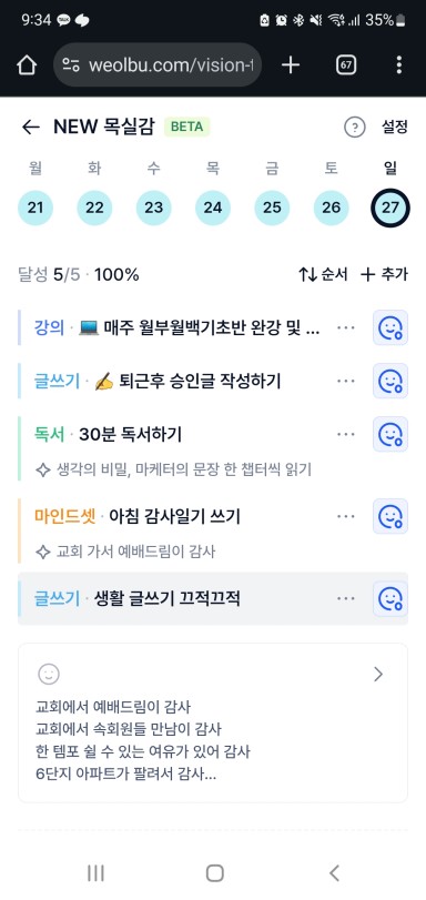 일주일 동안 목실감 작성 성공, 내 인생도 성공