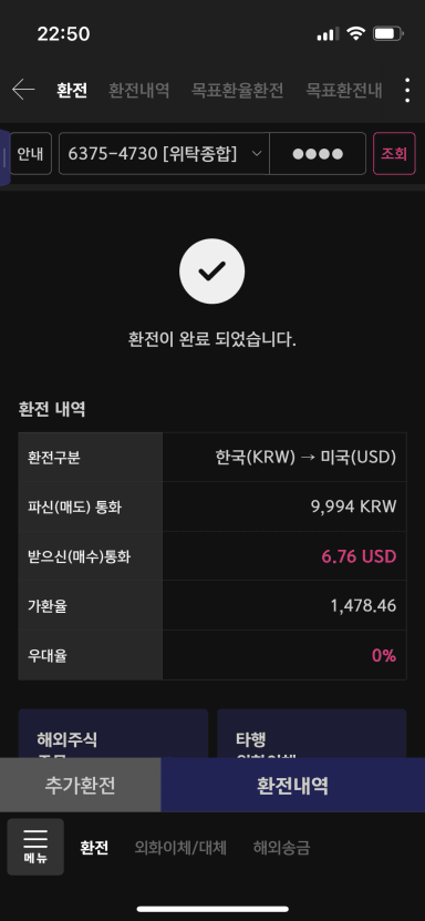 미국주식을 투자하기위한 환전 완료