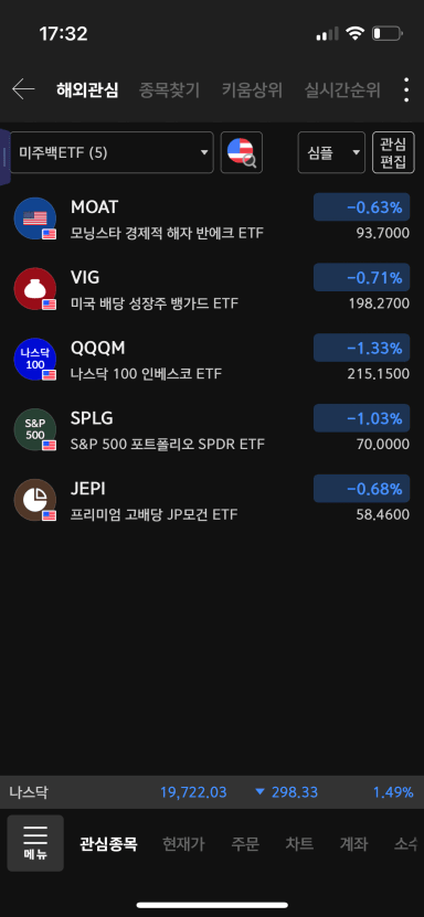관심종목으로 추가한 개별주식의 투자 난이도