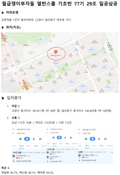 고양시 일산동구 마두동 강촌동아1단지 아파트 수익률 분석 보고서 [열반스쿨 기초반 77기 29조 일공삼]