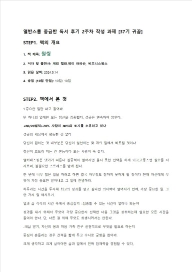 열반스쿨 중급반 원씽 독서 후기 [열반스쿨 중급반 37기 귀꼼]