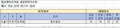 [내집마련기초반 45기 29조 녹음] 녹음이의 내집마련 예산 계산 및 후보 단지 정리하기