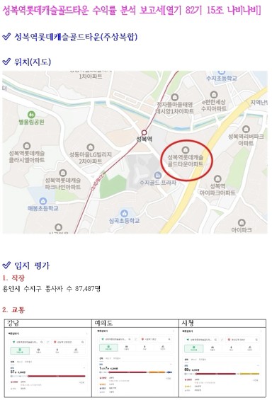성복역롯데캐슬골드타운 수익률 분석 보고서[열기 82기 15조 나비나비]