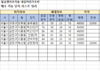 남다른노래의 내집마련 예산 계산 및 후보 단지 정리하기 [내마기 45기 54조 ]