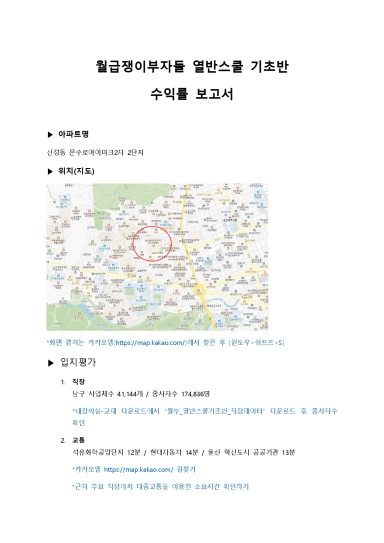 남구 신정동 문수로아이파크2단지 아파트 수익률 분석 보고서 [열반스쿨 기초반 77기 58조 벨라블루]