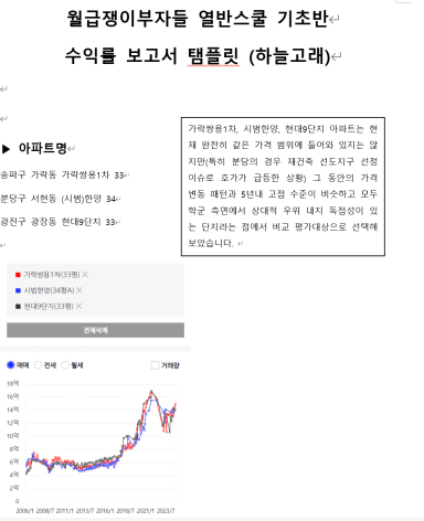 가락쌍용1차, 시범한양, 현대9단지 아파트 수익률 분석 보고서 [열반스쿨 기초반 79기 67조 하늘고래]