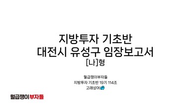 대전광역시 유성구 임장보고서 [지방투자 기초반 19기 114조 고래상어] 보고서는 계속된다