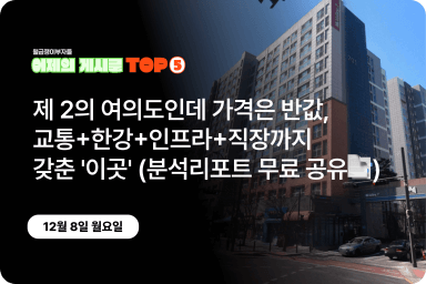 [어제의 게시글 Top5] 제 2의 여의도인데 가격은 반값, 교통+한강+인프라+직장까지 갖춘 이곳!
