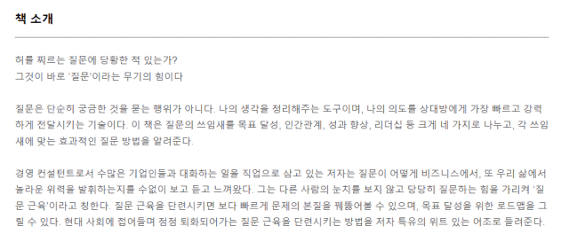 ▼추천도서후기 쓰는 양식 책 제목(책 제목 + 저자) 고수의질문법/미래의창 저자 및 출판사 :한근태/미래의창 핵심 키워드 3가지 뽑아보기 : #질문 #경청 #목표 도서를 읽고 내 점수는 (10점 만점에 ~ 몇 점?) :10점 1. 저자 및 도서 소개 : 2. 내용 및 줄거리 : 서문 당신은 질문하는 사람인가? 질문에는 세 가지 종류가 있다. 첫째는 자신이