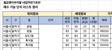 꿀땅의 내집마련 후보 단지 정리하기 [내집마련 중급반 9기 꿀땅]