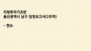 울산시 남구 임장보고서 [지방투자기초반 23기 32조 현쓰]