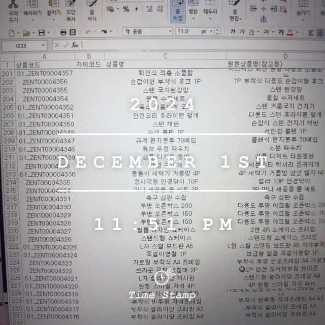 매출업 챌린지 워밍업🔥 1단계 : 챌린지 시작 전, 현재 등록 상품 수 인증하기 ※일자와 시간까지 함께 기록할 수 있는 ‘타임 스탬프’ 어플을 활용해 인증 사진을 촬영합니다. Q. 구글 폼 제출 완료하셨나요? 네 2단계 : 챌린지 계획 작성하기 ✅수요일(11/27)~금요일(11/29): 170개 등록 ✅토요일(11/30)~일요일(12/1): 115개 등록