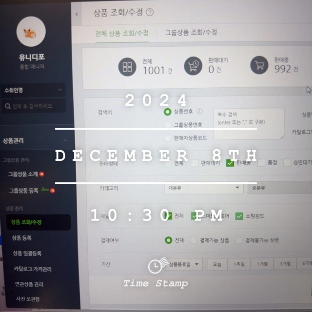 나를바바의 매출업 챌린지 1주차🔥 첫번째 매출업 챌린지 미션 인증 [Before] 상품 등록 수: 530개 [After] 현재 상품 등록 수: 701개 (+171개) 목표 달성률 : 100% [인증 사진 첨부] ※ 일자와 시간까지 함께 기록할 수 있는 ‘타임 스탬프’ 어플을 활용해 인증 사진을 촬영합니다.