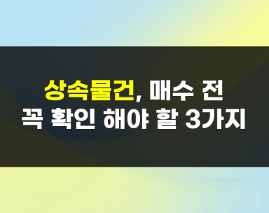 상속물건, 매수 전 꼭 확인 해야 할 3가지 [적적한투자]