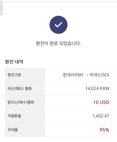 미국주식을 투자하기위한 환전 완료
