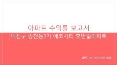 덕진구 송천동2가 휴먼빌아파트 수익률 분석 보고서 [열반스쿨 기초반 73기 88조 솔율]