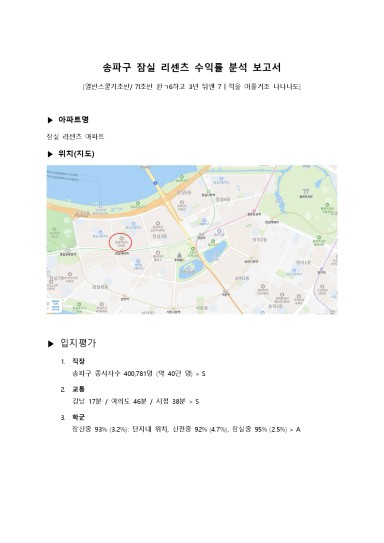 송파구 잠실 리센츠 아파트 수익률 분석 보고서 [7ㅣ초반 완ㄱ6하고 3년 뒤엔 7ㅣ적을 이룰거조 나나나도]