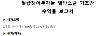 신당동 약수하이츠 아파트 수익률 분석 보고서 [ 열반스쿨 기초본 76기 13조 탱그리]