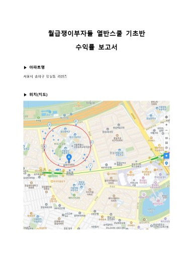 서울 송파구 잠실동 리센츠 아파트 수익률 분석 보고서 [열반스쿨 기초반 76기 37조 standon]