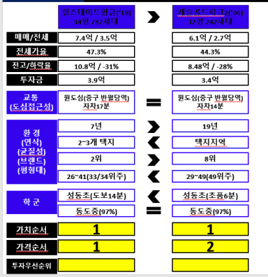 단지 비교평가시 혼동스러운 부분