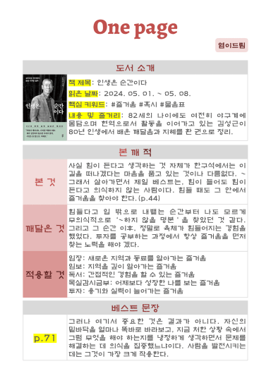 [염이드림] 독서후기 #1 인생은 순간이다_김성근