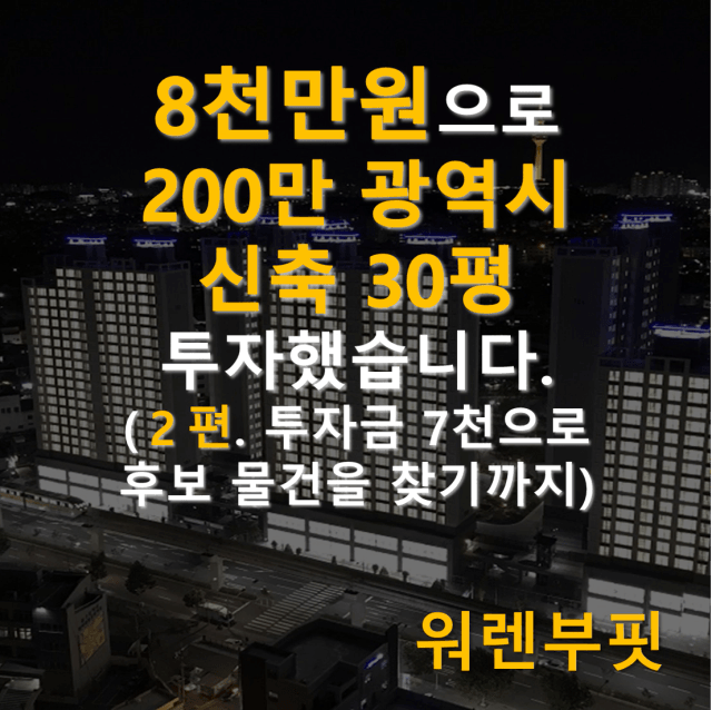 (2편) 8천만원으로 200만 광역시 신축 30평 투자했습니다. (투자금 7천으로 후보 물건을 찾기까지) [워렌부핏]