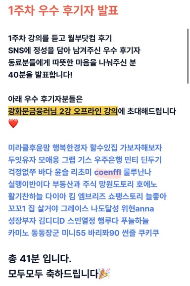 ⭐️ [coenffl] “쪼끔”아니고“많이!!” 이해 된 재테크 기초반 9기 2강 오프 강의 후기