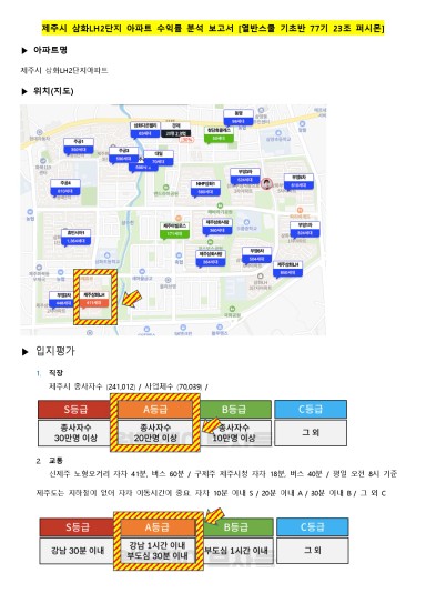 제주시 삼화LH2단지 아파트 수익률 분석 보고서 [열반스쿨 기초반 77기 23조 퍼시몬]