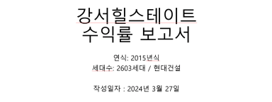 강서구 화곡동 강서힐스테이 아파트 수익률 분석 보고서 [열반스쿨 기초반 온라인]