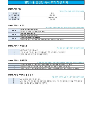 열반스쿨 중급반 원씽 독서후기 [열반스쿨 중급반 39기 82조 일은취미롱]