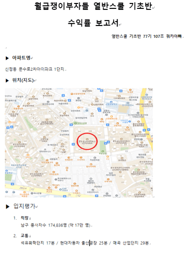 울산 남구 신정동 문수로2차아이파크 수익률 분석 보고서 [열반스쿨 기초반 77기 107조 쿼카아빠]