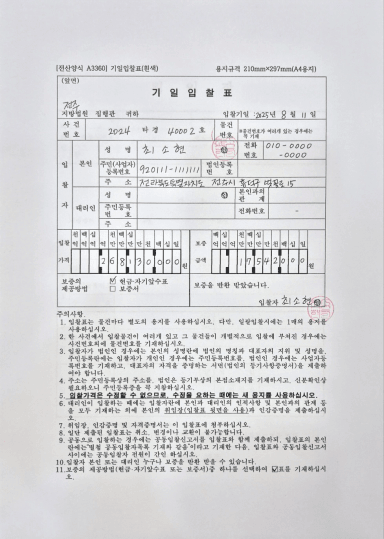 [경매올인원] 잔백의 기일입찰표 작성 인증