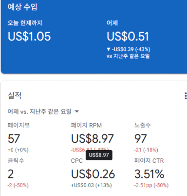 [헬로포키] 2/14 애드센스 수익일지, 첫 3달러 넘겼어요!