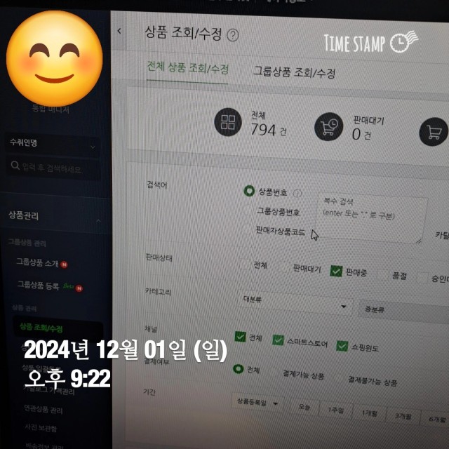 (soyang)의 매출업 챌린지 1주차🔥 첫번째 매출업 챌린지 미션 인증 [Before] 지난주 상품 등록 수: 487개 [After] 현재 상품 등록 수: 578개 (+91개) 목표 달성률 : 00% [인증 사진 첨부] ※ 일자와 시간까지 함께 기록할 수 있는 ‘타임 스탬프’ 어플을 활용해 인증 사진을 촬영합니다. (혹은)