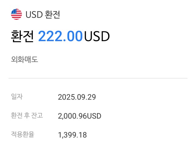 개설해둔 계좌가 있어서 원화를 달러로 환전하진 않았습니다. 주식 팔고 남은 예수금이 적정량 있어서요. 환율이 올라 있어서 달러를 팔았어요😅