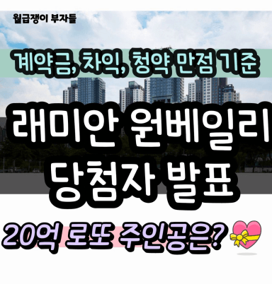 래미안 원베일리 줍줍 당첨자 발표! 20억 로또 주인공은? (+ 계약금, 시세차익, 청약만점 기준)