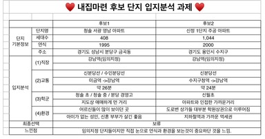 [내집마련 기초반 38기 71조 긴여름] 긴여름의 내집마련 예산 계산 및 후보 단지 정리하기